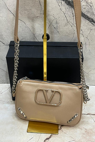 کیف دوشی زنانه برند valetino مدل v همراه بند بلند ترکیبی