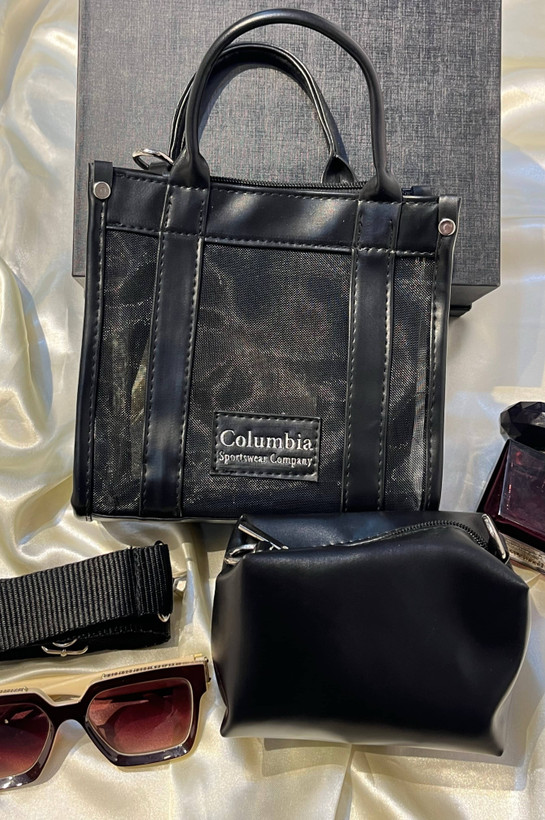 کیف زنانه مدل توری با رنگ مشکی و نقره ای از برند COLUMBIA یک اکسسوری شیک و جذاب برای استفاده روزانه یا مهمانی خاص استت