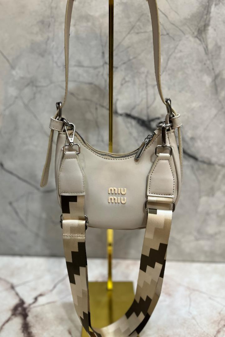 کیف دوشی زنانه مدل تک حلقه برند میو میو همراه بند بلند چرمی